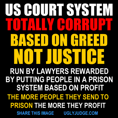 AMERICANS, Our justice system HAS BEEN TURNED INTO A BUSINESS. Its no longer about JUSTICE. Its about the creation (even if fraud) of legal fees. Lawyers all over the US charge from $200-$700 an hour. They’ve changed our legal system to increase profit by FORCING us to use their services. Our prisons are BIG BUSINESS and are paid by how many people they house. They offer KICK BACKS to lawyers and judges when victims are sent to prison. SAME AS THE JUDGE who sent children to jail for profit. However judges are doing this to innocent fathers (legal extortion to make them pay huge fees they can’t). The concept we must understand is INNOCENT people are being sent to prison because once in the system, those involved PROFIT. Prisons are run by BIG CORPORATIONS, they bill Tax payers by each person put in prison (NOT based on innocence or guilt). Lawyers (Public Defenders) profit MORE when sending their clients to prison. Even if innocent people can’t afford a trial when innocent. WAKE UP