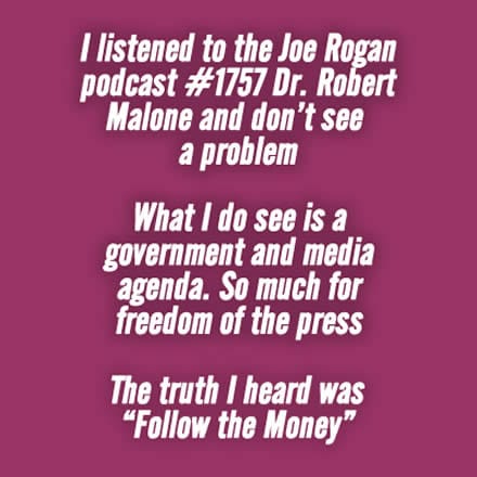 #1757 – Dr. Robert Malone, MD“Listen to this episode from The Joe Rogan Experience on Spotify. Dr. Robert Malone is the inventor of the nine original mRNA vaccine patents, which were originally filed in 1989 (including both the idea of mRNA vaccines and the original proof of principle experiments) and RNA transfection. Dr. Malone, has close to 100 peer-reviewed publications which have been cited over 12,000 times. Since January 2020, Dr. Malone has been leading a large team focused on clinical research design, drug development, computer modeling and mechanisms of action of repurposed drugs for the treatment of COVID-19. Dr. Malone is the Medical Director of The Unity Project, a group of 300 organizations across the US standing against mandated COVID vaccines for children. He is also the President of the Global Covid Summit, an organization of over 16,000 doctors and scientists committed to speaking truth to power about COVID pandemic research and treatment.”