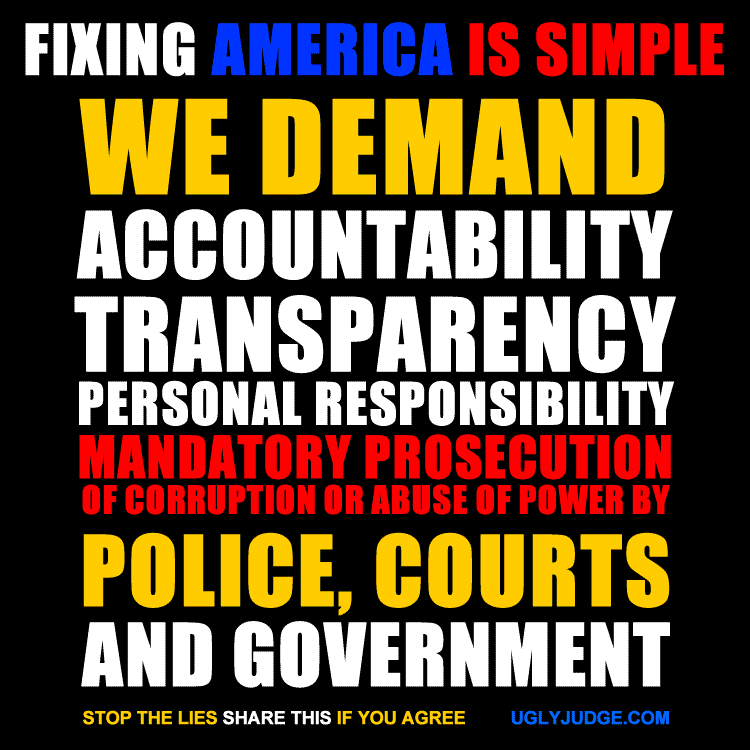 It’s REAL SIMPLE to fix America, its what rots every country, don’t lie to us and tell us its something else. GOVERNMENT was established to support the protect the PEOPLE not the interests of the RICH, Drug companies, war machines, psychopaths and greedy. PERSONAL RESPONSIBILITY from each civil servant, no passing the buck, no hiding or sealing evidence, records of wrong doing by tax paid servants. Our courts have become a JOKE, totally manipulated by lawyers and based on GREED AND PROFIT, not Justice or our constitution. American’s have ignored what has been going on far too long. When the good servants take a stand with the tax payer and expose, remove and prosecute the bad servants America can get back to doing what made this country great. Real freedom and justice.