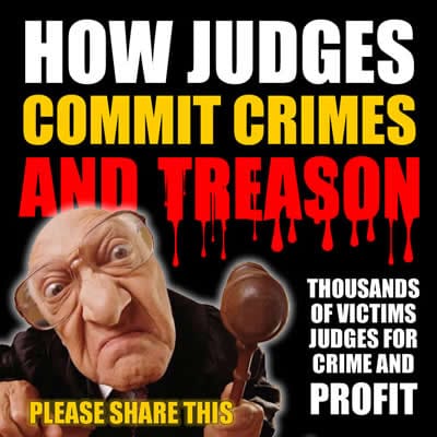 Judges who commit crimes and treason in our courts. Due to immunity to prosecution and hiding behind chamber walls judges can manipulate justice for all and use YOUR COURT SYSTEM to steal, lie, cheat and even murder for profit. SEE THIS ARTICLE How Judges Commit Crimes and Treason