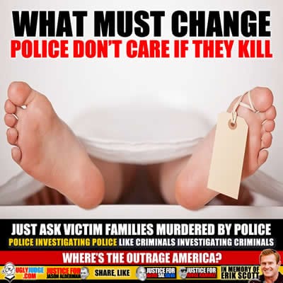 What should really bother Americans is what police do after they execute, murder or kill a person. No matter how you look at it a death is NOT a good shooting. A life is taken, lost forever and due to that armies of victims are formed on a daily basis. Hand cuffing dead bodies, unarmed dead bodies, innocent dead bodies. Police acting and being supported by a broken system which allows them to kill with impunity. We’ve support police so much, looked the other way so much, trusted the badge and image so much. They’re using it against us to get away with crime and murder.