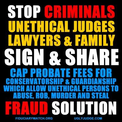 FRAUD SOLUTION, Take the profit out of crime. Did you know lawyers can pretend to help a senior but at the same time charge them HUNDREDS of thousands of dollars in legal fees behind the disguise they’re helping? The truth is THEY’RE STEALING, LYING AND ROBBING seniors, veterans, children and defenseless persons. Its really called AMBULANCE CHASING, where lawyers AND JUDGES pretend to help people however in reality they’re forcing them to use their ULTRA EXPENSIVE SERVICES. When the money runs out you see who these con-artists really are, they dump the penny-less victim when the cash runs out. PLEASE SIGN THE PETITION DEMANDING THE FEES ARE CAPPED.