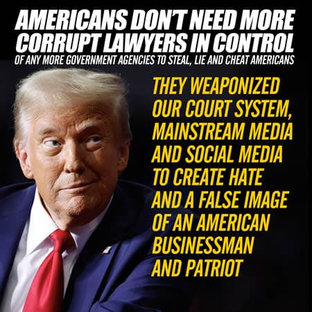 Our courts have been weaponized for decades and used to steal from honest, hardworking Americans for decades. It’s happening in all divisions of courts and highlights the fact that a legal BAR license has been and more than ever is a license to steal, cheat and lie with impunity. Trump has been targeted with one after another of these court cases, with the only intention which is to stop him from running for president.