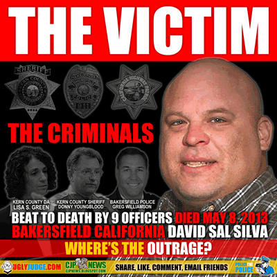 Seven sheriffs and two California Highway Patrol officers responded to a call about an intoxicated David Sal Silva outside Kern Medical Center. According to reports, David Sal Silva resisted the incoming officers as they tried to arrest him, prompting the nine officers to beat him with batons. David Sal Silva reportedly died in the scuffle, but not of the beating.